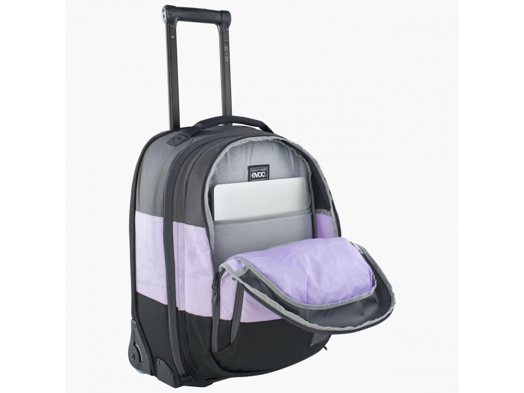 Kompaktní lehká taška na kolečkách s odnímatelným batohem pro krátké cesty.